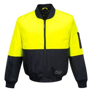| K8160 - FLYER JACKET AS/NZS 4602.1:2011 Class D High visibility bomber jacket, premium reflective tape, fully lined & quilted. Features knit collar, cuffs and hem. UPF50+, waterproof coating on fabric. Shell Fabric: 100% Polyester 300D Oxford Weave, PU Coated 185g Lining Fabric: 100% Polyester 60g Filling Fabric: 100% Polyester 170g Sizing: Yellow/Navy, Orange/Navy S-6XL |